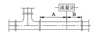 1.流(liu)量計上遊有(yǒu)90°彎頭 保證流(liú)量計的前直(zhí)管段A≥7D,後直管(guan)段B≥3D |